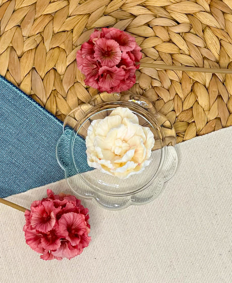 Roku darbskatra forma, pušķis un ziepes tiek izgatavotas ar rokām.